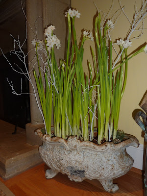My, what a difference a month makes! With a little water and sunshine, these “brown paper” wrapped bulbs have produced a vision to behold. Perfect to have next to a roaring fire during the cold days of winter.