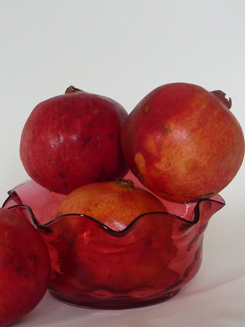 SOS — the season for buying pomegrantes is short, and coming to a close. Last year, for the special late January birthday featured in the above mentioned post we couldn’t find any pomegrantes, so we had to use raspberries from some far-far-away sunny location. Not this year! The season for these hard rinded beauties can be extended by storing them in the produce drawer of the refrigerator. Why not stock up, and enjoy these precious jewels for a few more weeks.