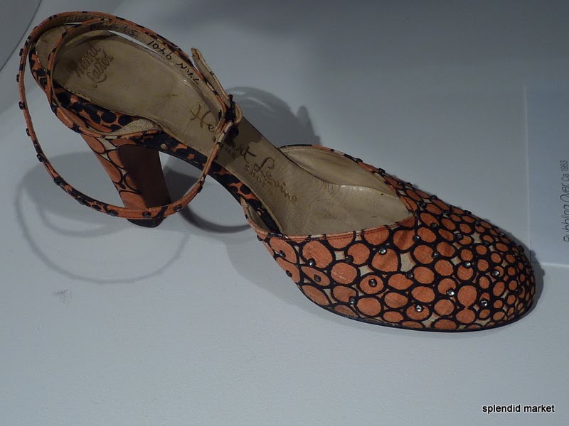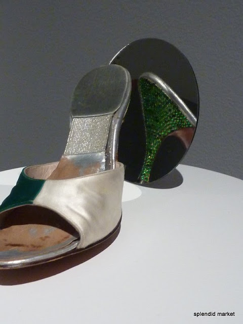 Most of the shoes are from the collection of Helen Verin, who wrote a book on Ms. Levine (available at Splendid Items). This exclusive exhibit runs through June 6, 2010. We (illicitly, oops!) photographed less than 1/10th of the shoes on display — once we put our camera away, we enjoyed circulating in a high level awe as we explored the never ending imagination that went into creating these shoes!!