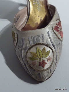 The Levines were the first to do business with the Far East after WWII. They would send fabrics from Italy and France over to be embroidered, then the shoes would be assembled at their factory in New York. They worked with the embroiderers who worked for the Emperor of Japan, amongst others.