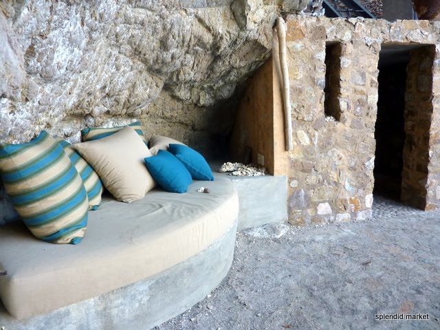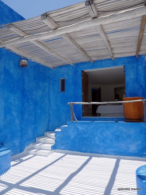 Granted, this house is on an amazing setting, but really, by combining shades of blue and white, some simple covers (these are covered with weatherproof Sunbrella fabric, available for great prices at the catalog Sailrite, I believe this color is canvas taupe), cotton throw pillows and a few natural accents, this look and feel could be reinterpreted most anywhere.