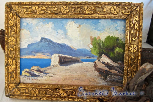 Not surprisingly, seascapes were prevalent in this region, this lovely little piece in a worn gilded frame will always remind me of the view from our house in Eze-bord-de-Mer.