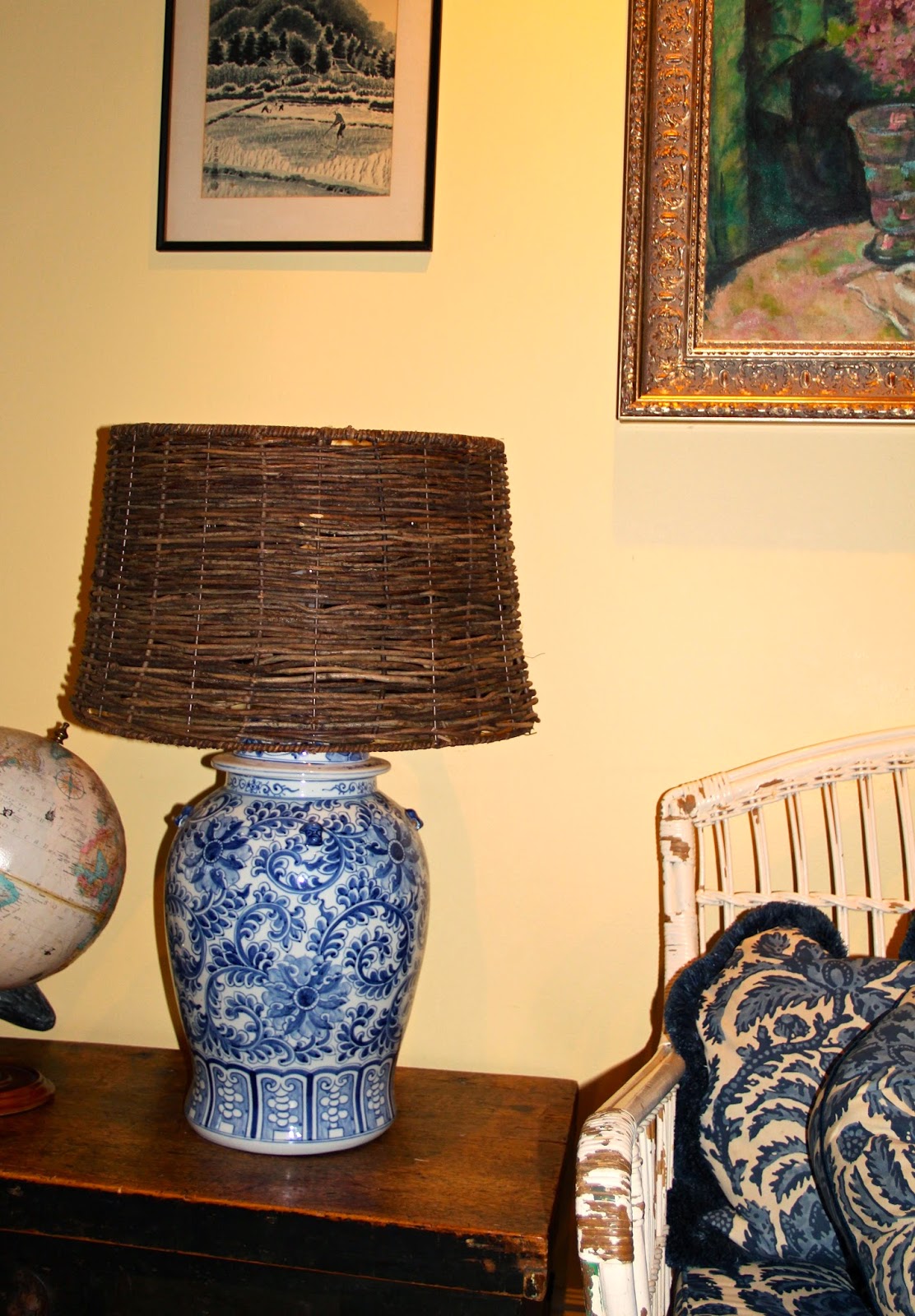 Believe me, I was more than happy to absorb this pair of Ralph Lauren large blue and white ginger jar lamps, but the shades they were wearing were not quite right for my family room.