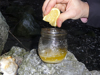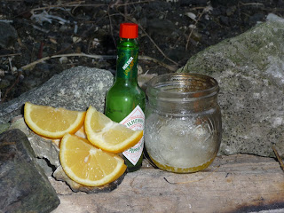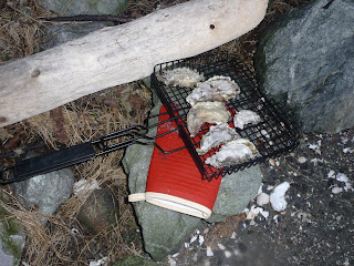 This time of year we are beginning to have a few nice days where an afternoon on the beach is pleasant and the oysters are splendid!! If invited to join someone delightful at a beach fire, by all means, attend. If you can grab a few items on the way, it will make things a little more civilized, you can enjoy the beach and a few bivalves with very little.