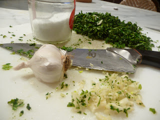 The food processor version is nice and fast, but sometimes the more rustic pestare can be so enjoyable. But, the mortar and pestle, (….how do you say oh, la, la in Italian?) takes some effort.