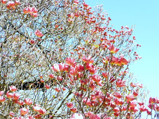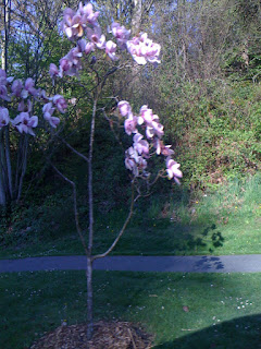 Saucer magnolias can make an incredible display as individual flowers. These trees look like they were planted a year ago. Imagine the big dramatic branches one could prune off as this tree grows.