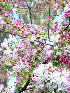 | The contrast between the knobby, grey branches and the delicate blossoms and leaves of flowering apples, crabapples, cherries, plums and pears is one of the prettiest sights in nature. |