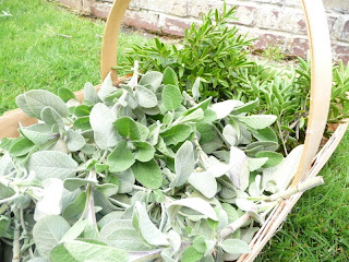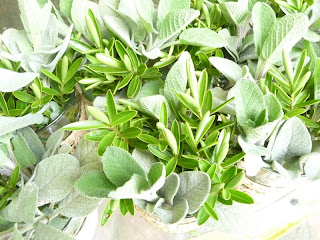 At Splendid Market, we keep several types of herbs and evergreen shrubs growing in our gardens because they work well in bouquets. For these bouquets we cut 45 stems each of Sage and Hebe. A combination of greens make for a more complex, interesting bouquet.
