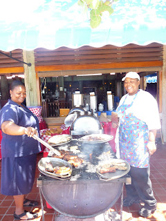 The fish are grilled on these rustic half-barrel grills filled with large chunks of charcoal. The charcoal is a by-product of necessary clearing in the archipelago.