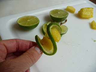 10 lime slices, cut in 1/2 almost all the way, leave the last bit of rind in tact