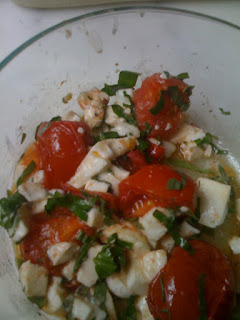 Put tomatoes back into serving bowl with oil, add mozzarella and basil