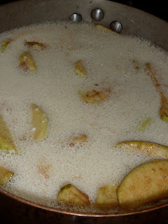 Toss in the apples and stir until they are coated with the cinnamon sugar mixture and a little soft (about 5 minutes).