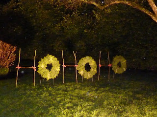 Using sticks, ribbons and wreaths, there was a festive Ho Ho Ho greeting and a friendly little critter in the front lawn!