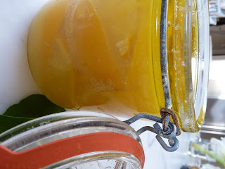 After 5 days, pour in enough olive oil to cover the lemons and refrigerate.