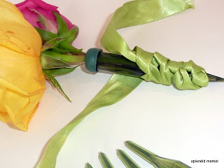 The message was attached using the yellow ribbon. The green ribbon was tied in a knot at the top. The ends of the ribbon may need a final trimming with sharp scissors if frayed.