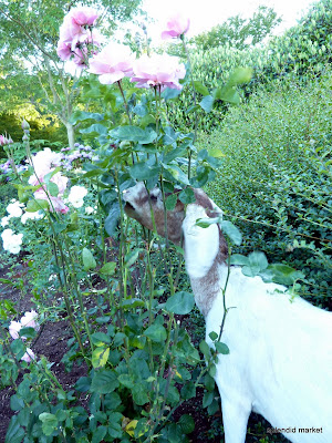 The goats had had their fill of blackberry briers, and apparently found the neighbors roses to be quite enticing.