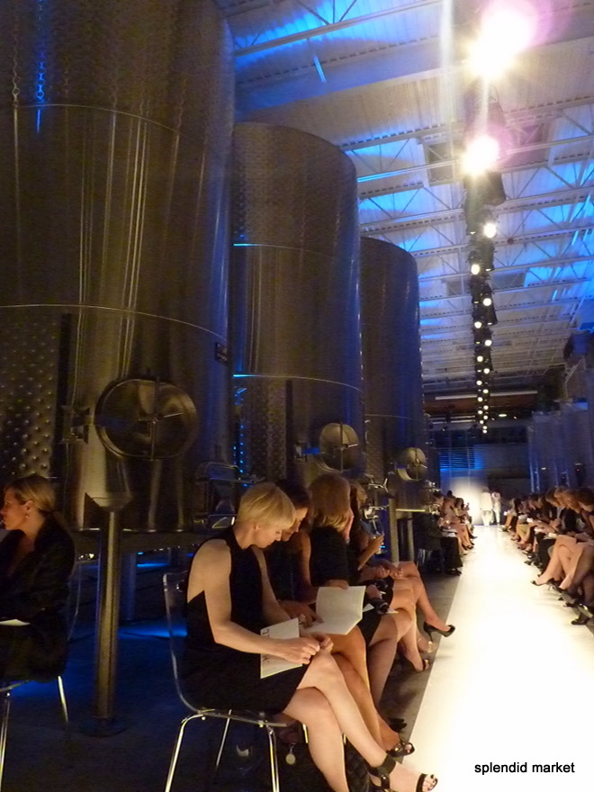 The runway was simply spectacular, we sat in and amongst the steel “barrels”of wine. The room was flooded with intense blue lights.