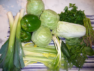 A wreath of fresh Italian parsley adds another dimension of green. The stems of the parsley are tucked under the cabbage bowl to offer more stability.