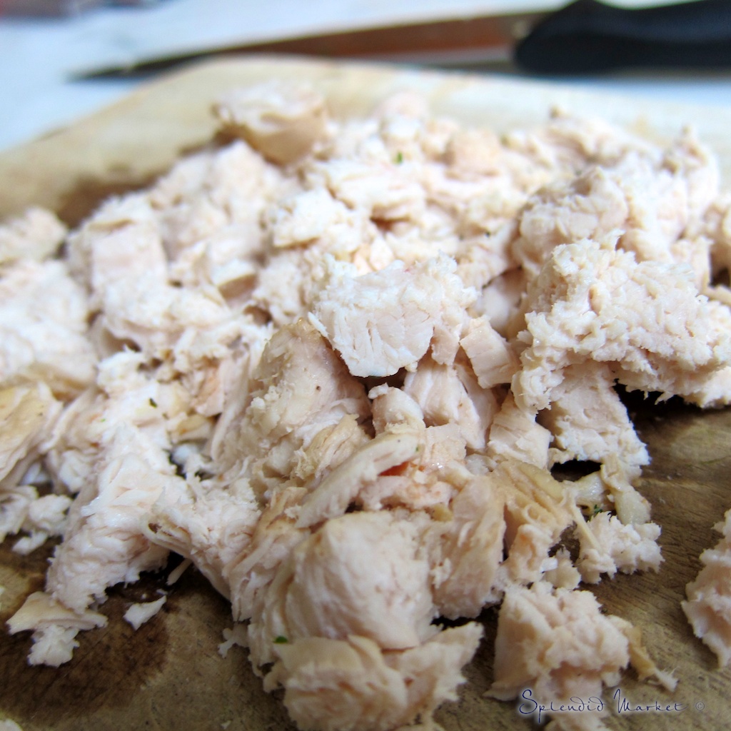 While the spinach with wilting, I chopped up about 1/2 half of the poached chicken breast.