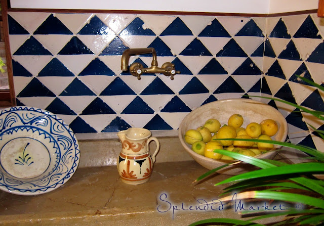 Being a blue and white devotee, I completely fell for his gorgeous tiled kitchen.
