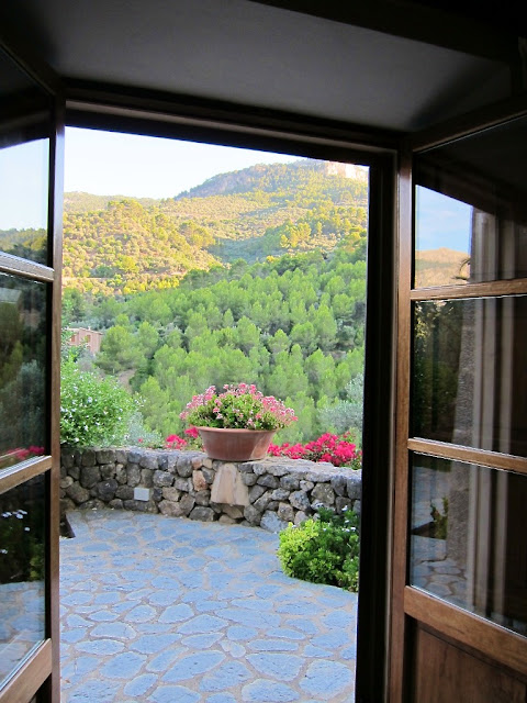 I’ve arrived at Finca Hermosa outside of the town of Sóller, on the island of Mallorca, where we’ll be staying with friends for a week. I am mesmerized by the lovely views from my room, the dramatic Serra de Tramuntana mountains encircle the villa, the hills are covered with mix of olive trees, carob trees and brush.