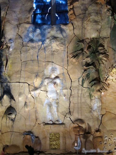 In addition to many other changes, he created The Grotto. The colors of the stained glass windows are unusually unsymmetrical in design and resemble the view one might have if they are ooking up to the sky from beneath 30 feet of water.