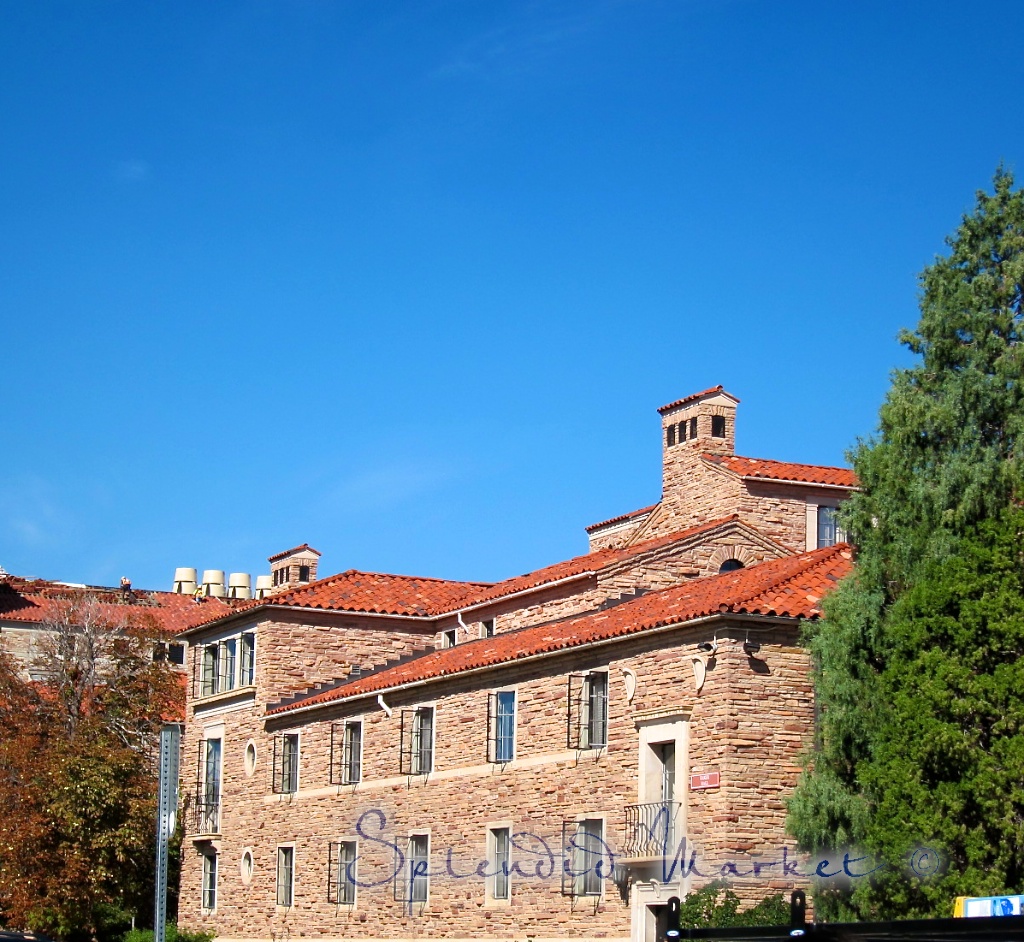 “CU’, as it is called, has a gorgeous campus. One of the keys to the beauty is the lovely limestone, all of the buildings built since he school began were made with this stone, all from the same quarry. The university was established in 1876, the same year as the state of Colorado, and has grown from one building to a sprawling village of structures. But at first glance, because of the common shade of the stone, it looks as though it was all built at the same time.