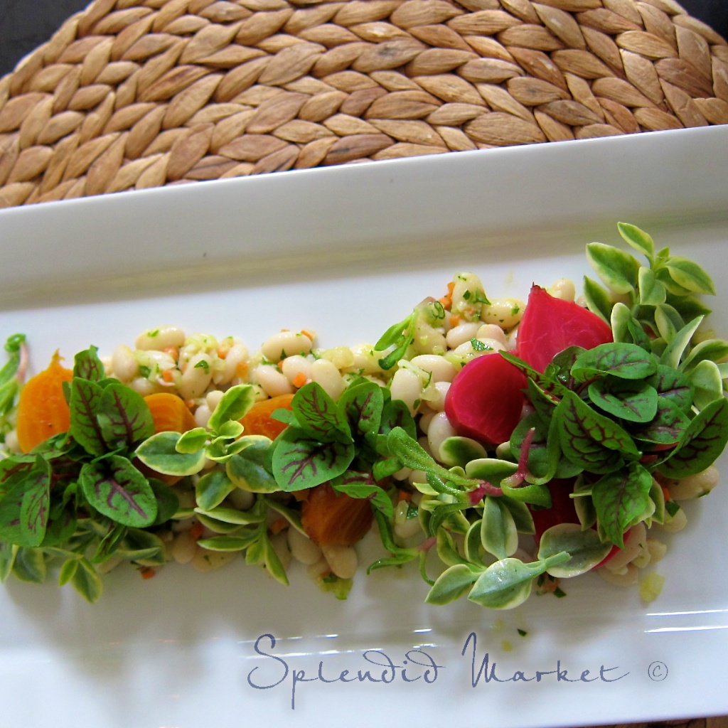 I love beets, so I was thrilled to see these delicate, colorful jewels in my lunch salad. One of the highlights here was the “crystal sorrel” sprigs which topped the white beans.