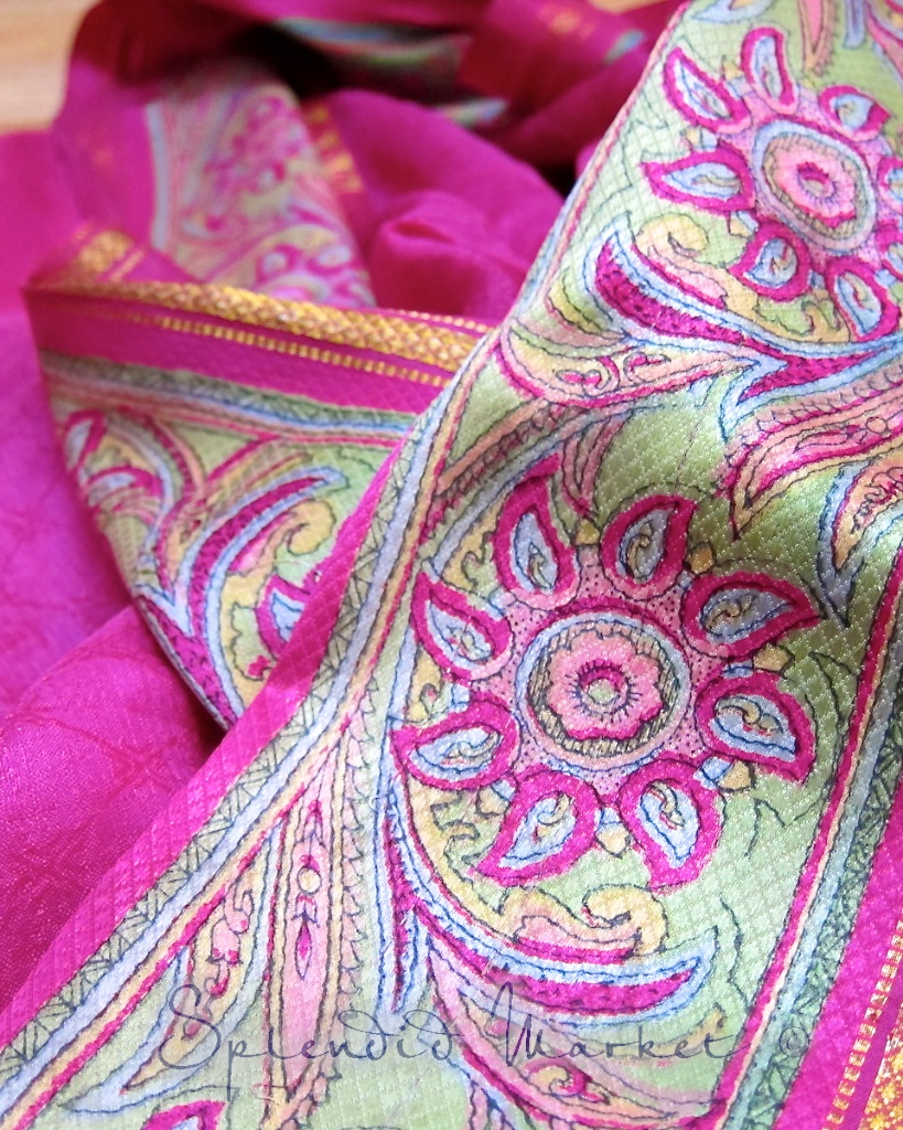 As she stretched out the piece of tape, she read the writing on it “oh, someone found it in the back room”. I let them know I was terribly appreciative and asked if I could leave a reward for that employee. “Oh no, but there is the girl who found it.” A woman was coming towards us, her head and shoulders wrapped in the most beautiful pink silk floral wrap.