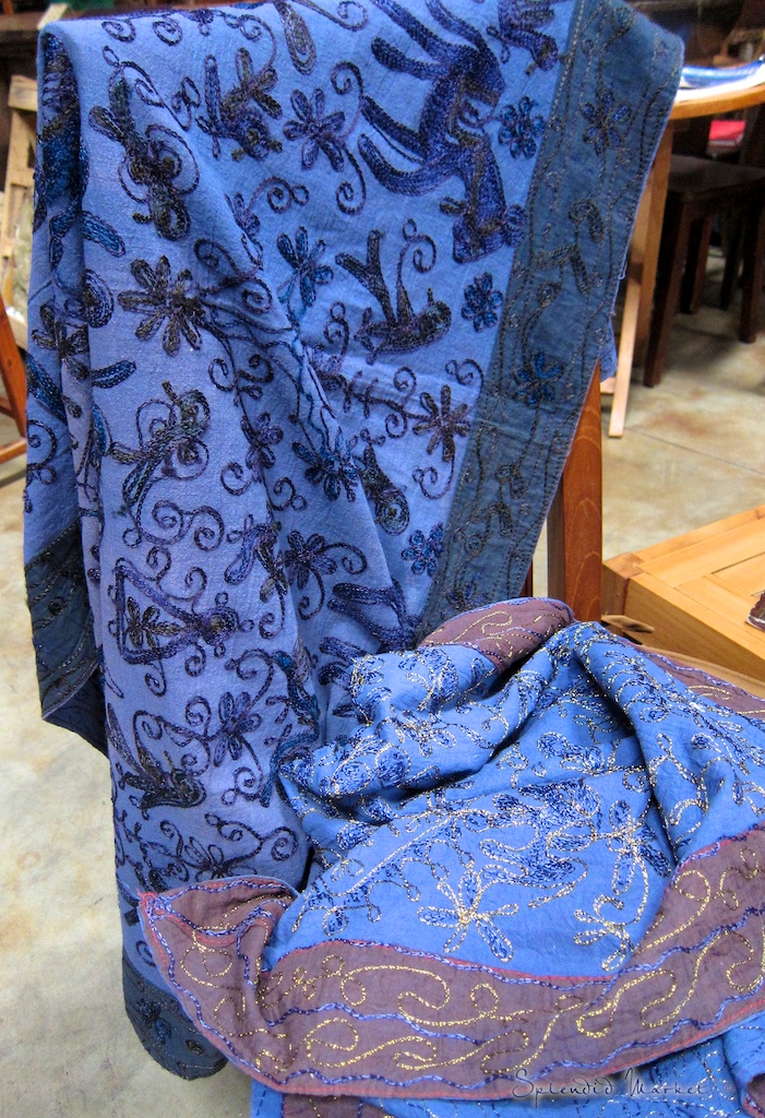 Considering that our bags were all packed and stacked in the jeep I couldn’t really consider anything too bulky, so I settled for the 2 beautiful blue embroidered pieces on the right below. They were just the right size {for my suitcase and bod}. Tied around my waist they’ll serve as a splendid little skirt or cover-up.