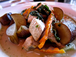 Afterwards, I didn’t want to eat anything else…I just wanted to continue relishing the flavors of that meal. Under this chunky mound of vegetables and Ono {they offer a choice of meats}, was a core of delicately steamed cabbage leaves. The sauce is a blend of green chili, galanga, keiffer lime leaf and coriander seeds. The vegetables and bits of Thai basil are beautifully complimented by this silky sauce.