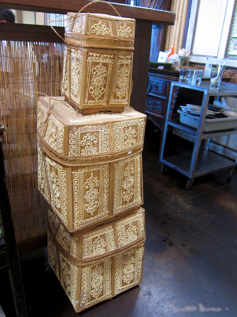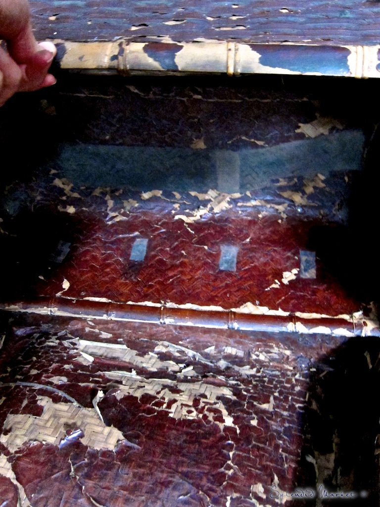 Here is my most favorite piece, a beautiful woven bamboo suitcase painted pale blue, over an old layer of navy blue, it had the most gorgeous patina. Oh, if a suitcase could talk.… I would just love to hear the stories of it’s travels.