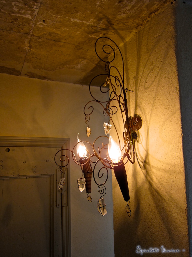 I also admired the whimsical wire sconces secured to these ancient stone walls. They bring just enough light, and wonderful shadows to each floor.