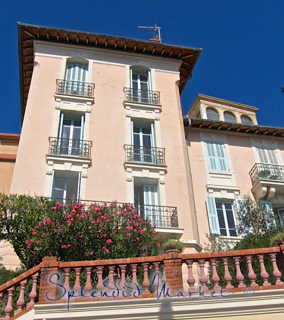 It was built during La Belle Époque, or the “beautiful era” {1890 thru 1914}. This was a period of optimism for France, when they were enjoying a period of peace and prosperity. Many advancements were made in technology, sciences and the arts during these years.In the South of France, and particularly in Beaulieu~sur~mer, developing architecture reflected the spirit of lavish creativity that was prevalent at this time. Craftsmen were creating beautiful homes, sleek in design, and airy, with high ceilings. The sleekness was contrasted with ornate moldings, iron gates and balconies and many homes had flower painted friezes. Colors of the sunset washed the exteriors, shades of pink, rose, coral and gold, oftentimes with contrasting colored shutters. Many of the architects were Italian. Here is a quote from the current owners about Villa Spirita “One of the first villas to be built in Beaulieu sur mer ~ built by an Italian who was building some of the fabulous villas in the area for Russian Grand Dukes and other European Royalty. It is named after his wife Spirita Busi. It was subsequently sold to Oliver Gerard, a film director from Paris, married to a god-daughter of Queen Victoria.”