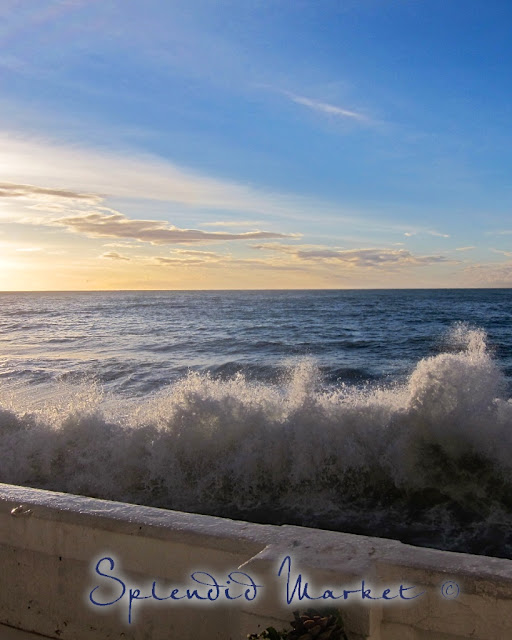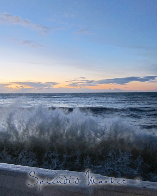 By morning, most of the clouds had been blown away but the huge seas were still rolling in from Africa, pummeling our sea wall {as they had been all night}.