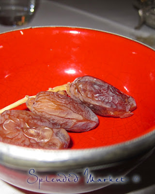 After lunch, there was a plate of sweet dates.
