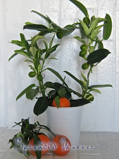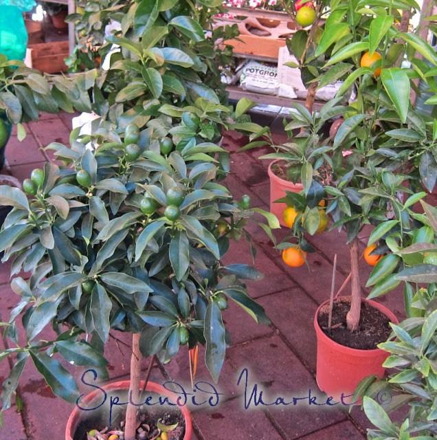 and kumquat branches, laden with fruit.