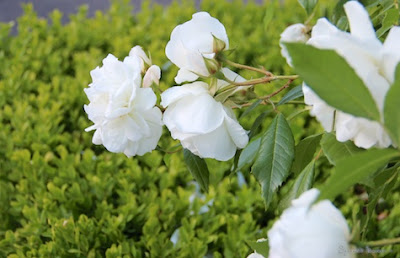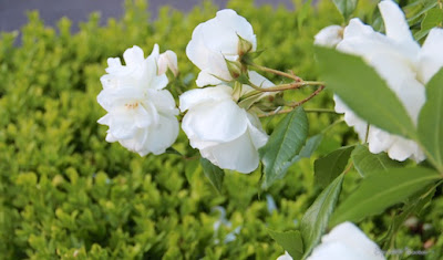 I love pulling into the driveway and seeing these delicate white Iceberg climbers swaying in the breeze,
