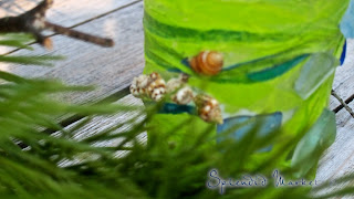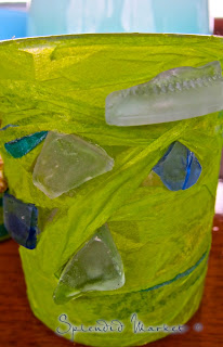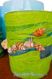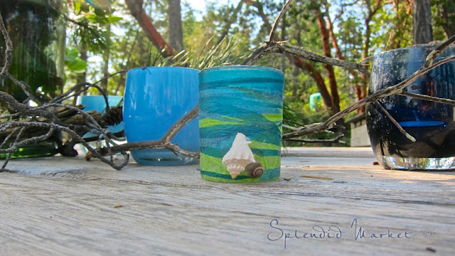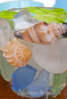 We had started gluing shells and beach glass on plain glass votives.