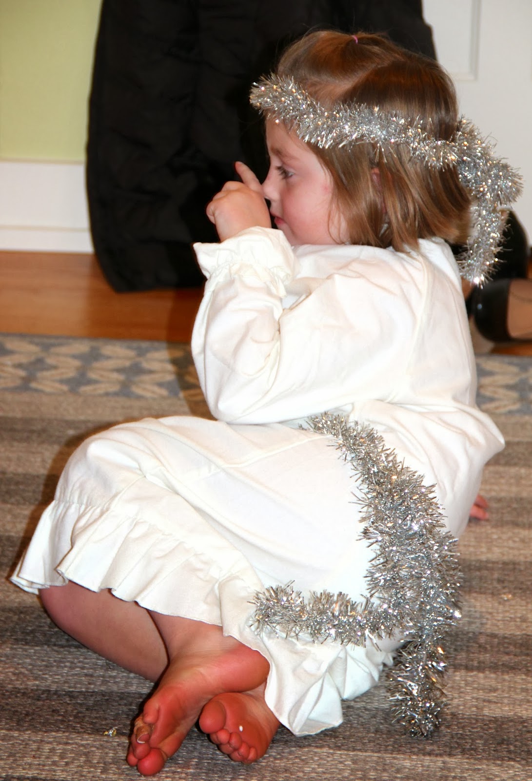 and tie silver tinsel around their waists and heads.