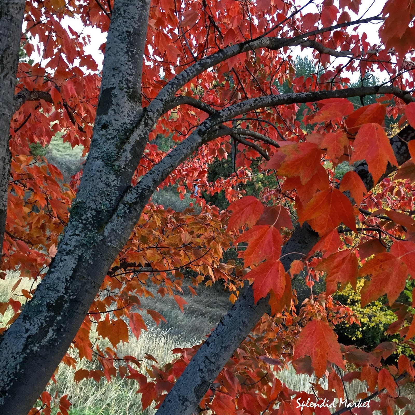 The bright colored leaves offered even more contrast and looked stunning against the drying grasses and the lichen covered bark.