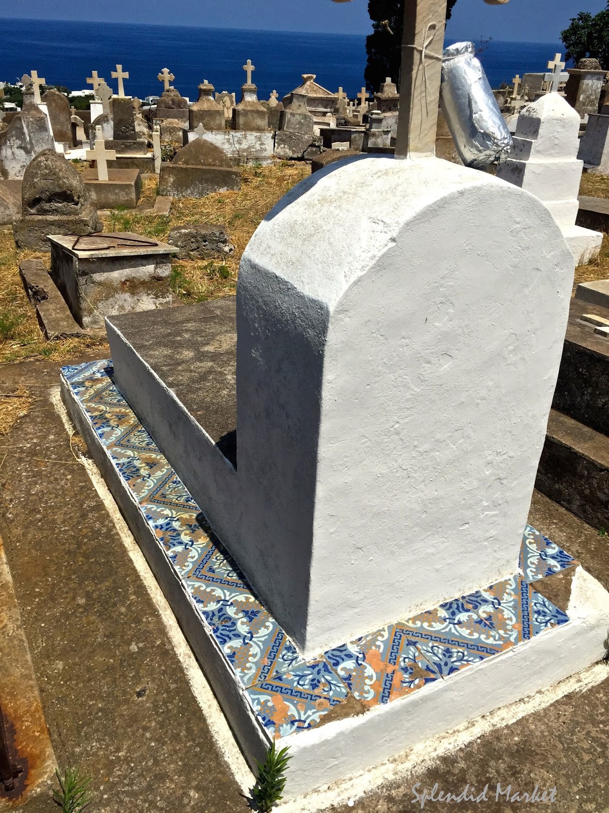 Stromboli is probably the most famous of the Aeolian Islands, it’s permanently active volcano shoots up a fiery show that can be seen at night from boats off shore, other islands or from the top of the crater, for those willing to hike up {I wish I had}. The island has a long and wild history which is somewhat documented in the cemeteries we came across during our lowland hike on the island. While they may not be well tended to anymore, at one time these graves were carefully constructed and finished with exquisite hand painted blue and white tiles by loved ones in honor of those who have lived and died on this rough, remote island that is beaten by wild winds, crashed upon by the Tyrrhenian sea and constantly threatened by the resident volcano.