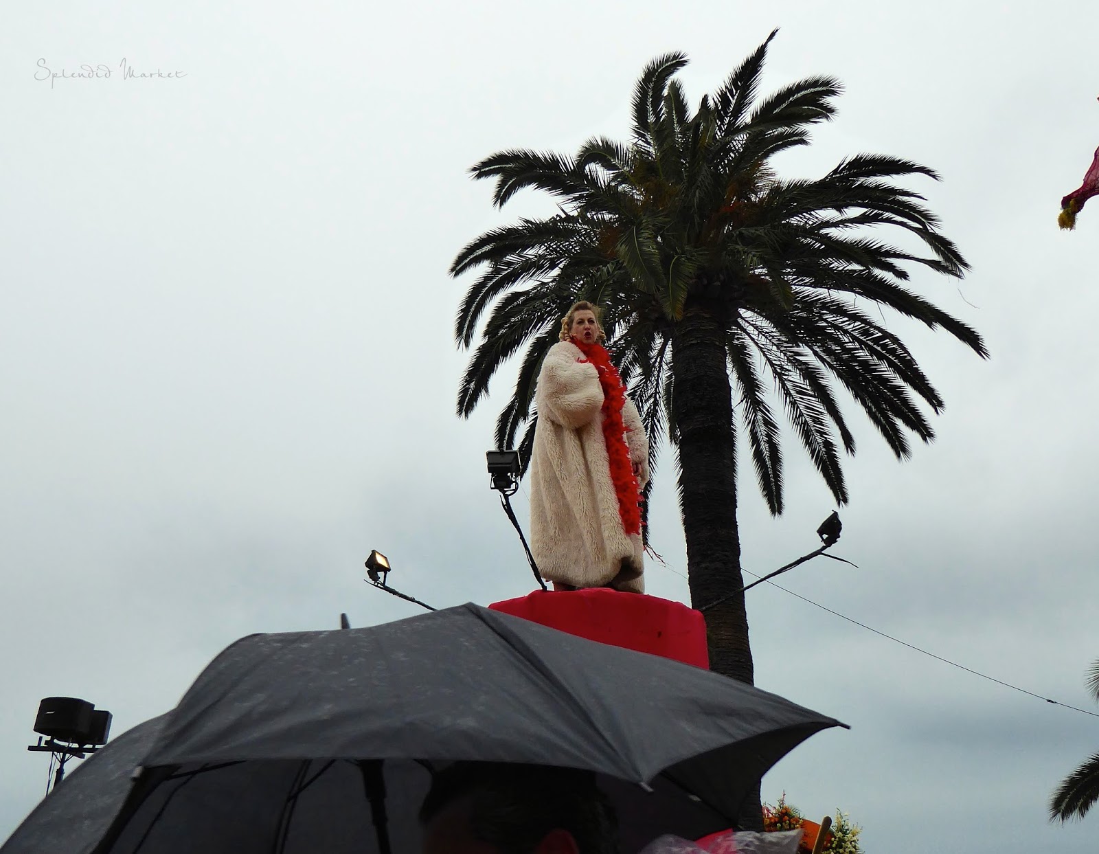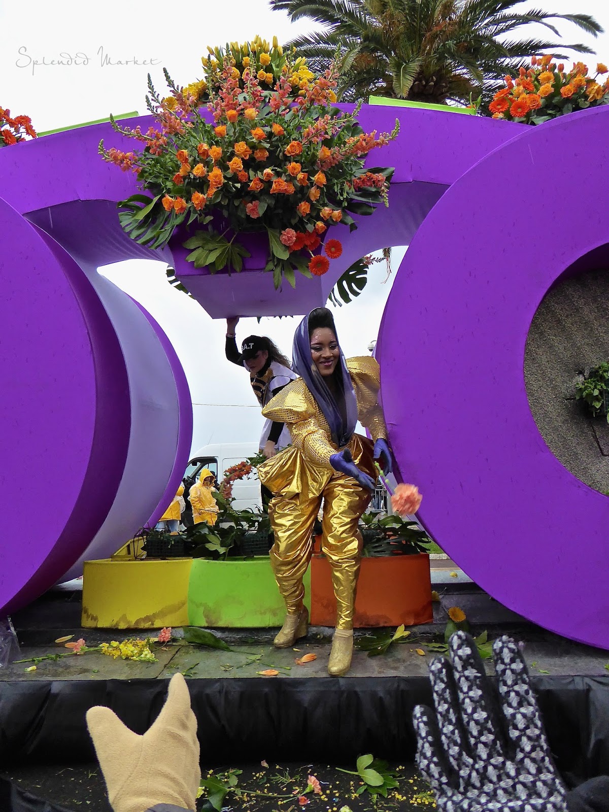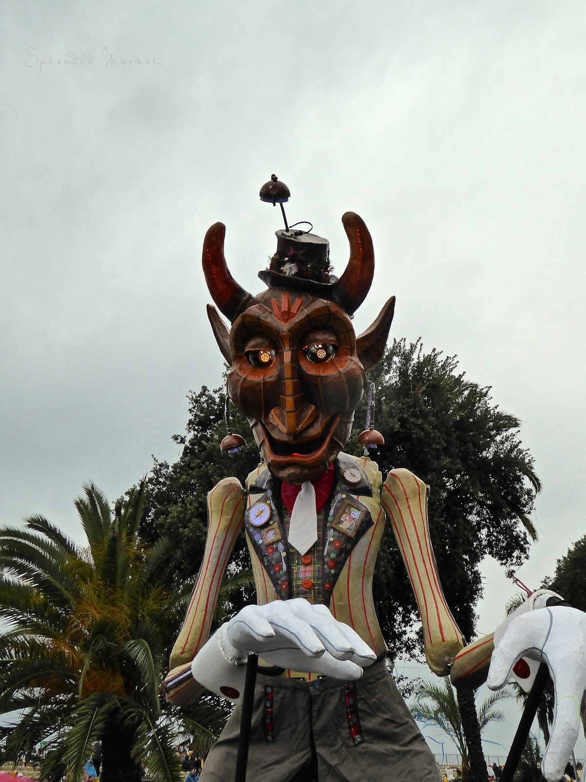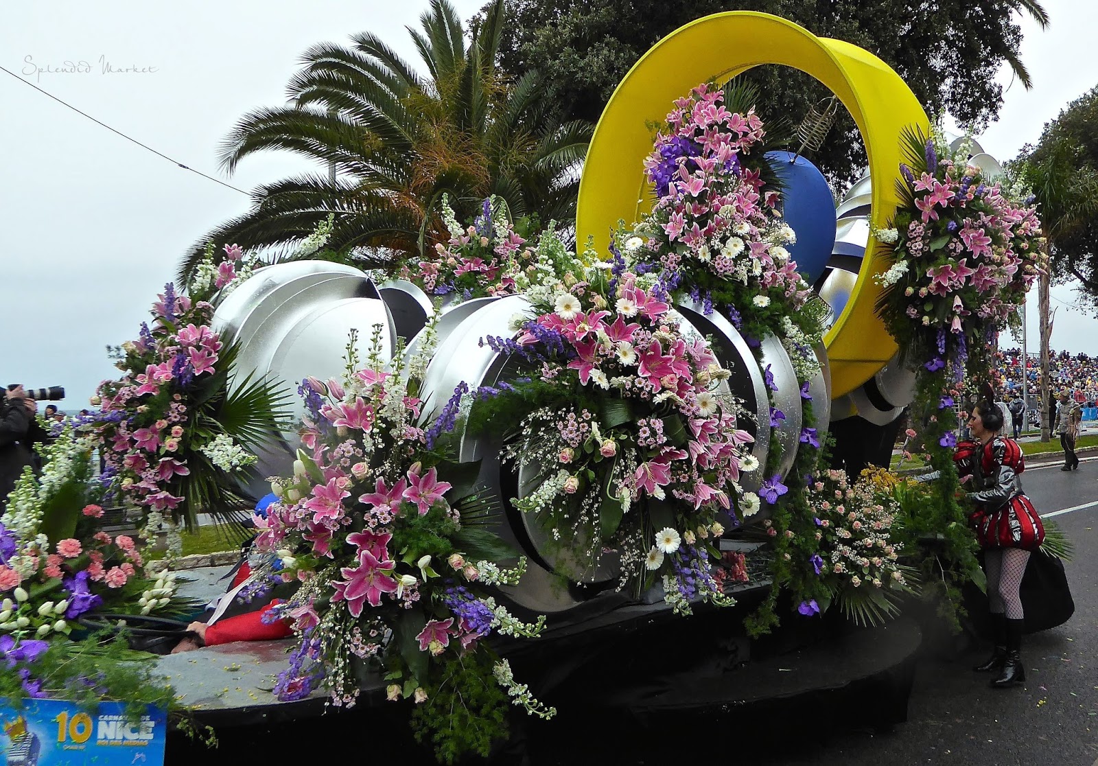 In 1872 they first started throwing things to the crowds from the elaborately decorated floats that rolled by…. typically confetti, flowers and eggs. Today loud confetti bombs shower the crowds with paper confetti and air guns shoot out streams of colorful tinsel that hang from the palm trees that run down the center of The Promenade des Anglais, much like the Mardi Gras beads hanging from the trees in New Orleans.