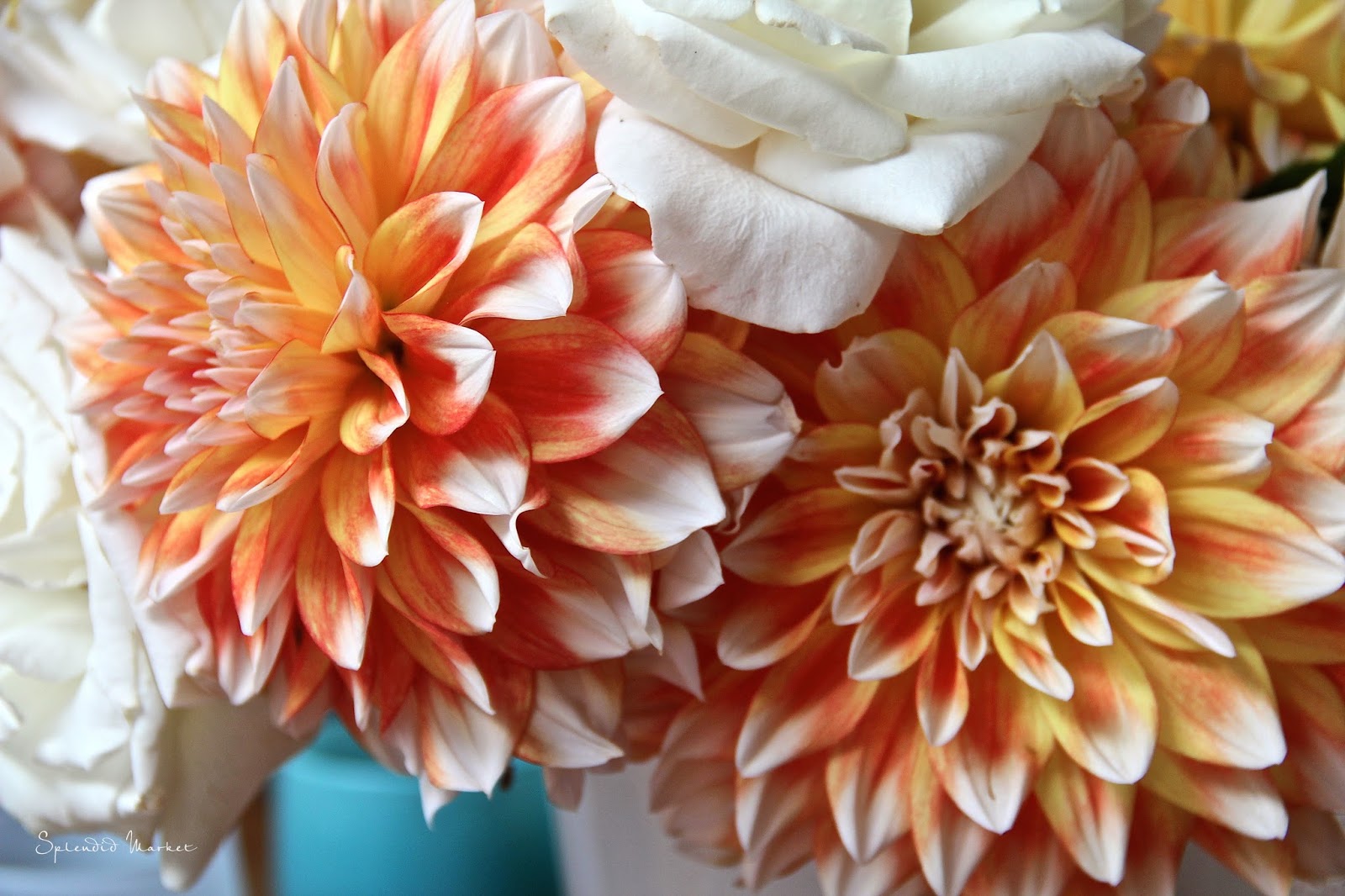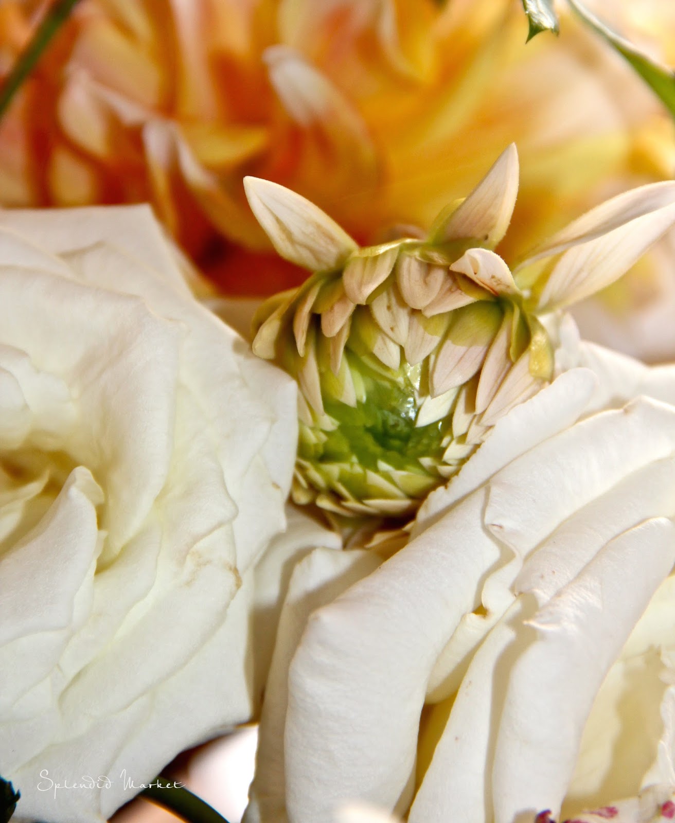 I just arranged the dahlias in my hand, trimming the ends to the right height for the vase.