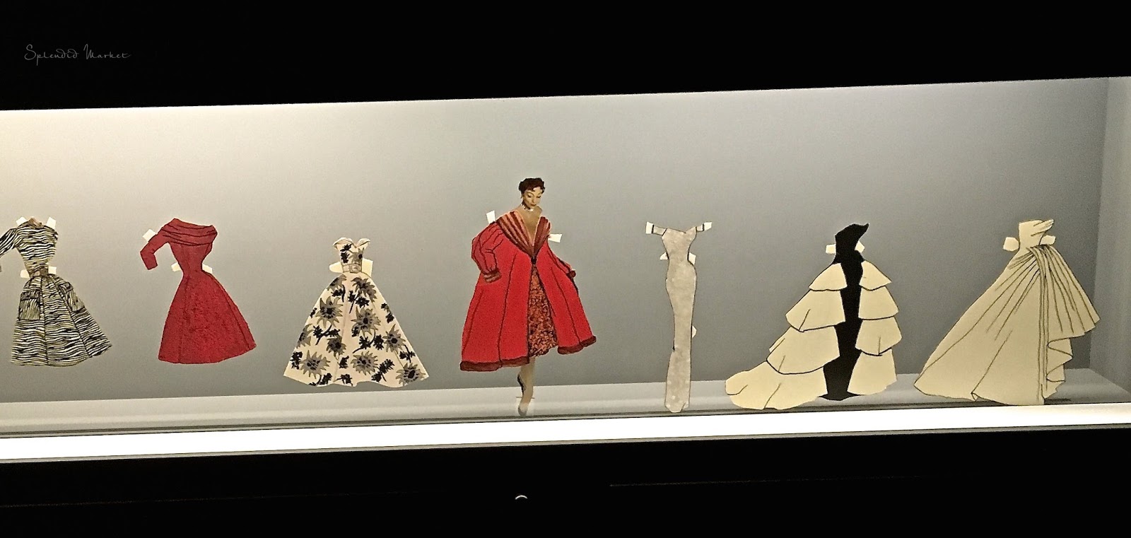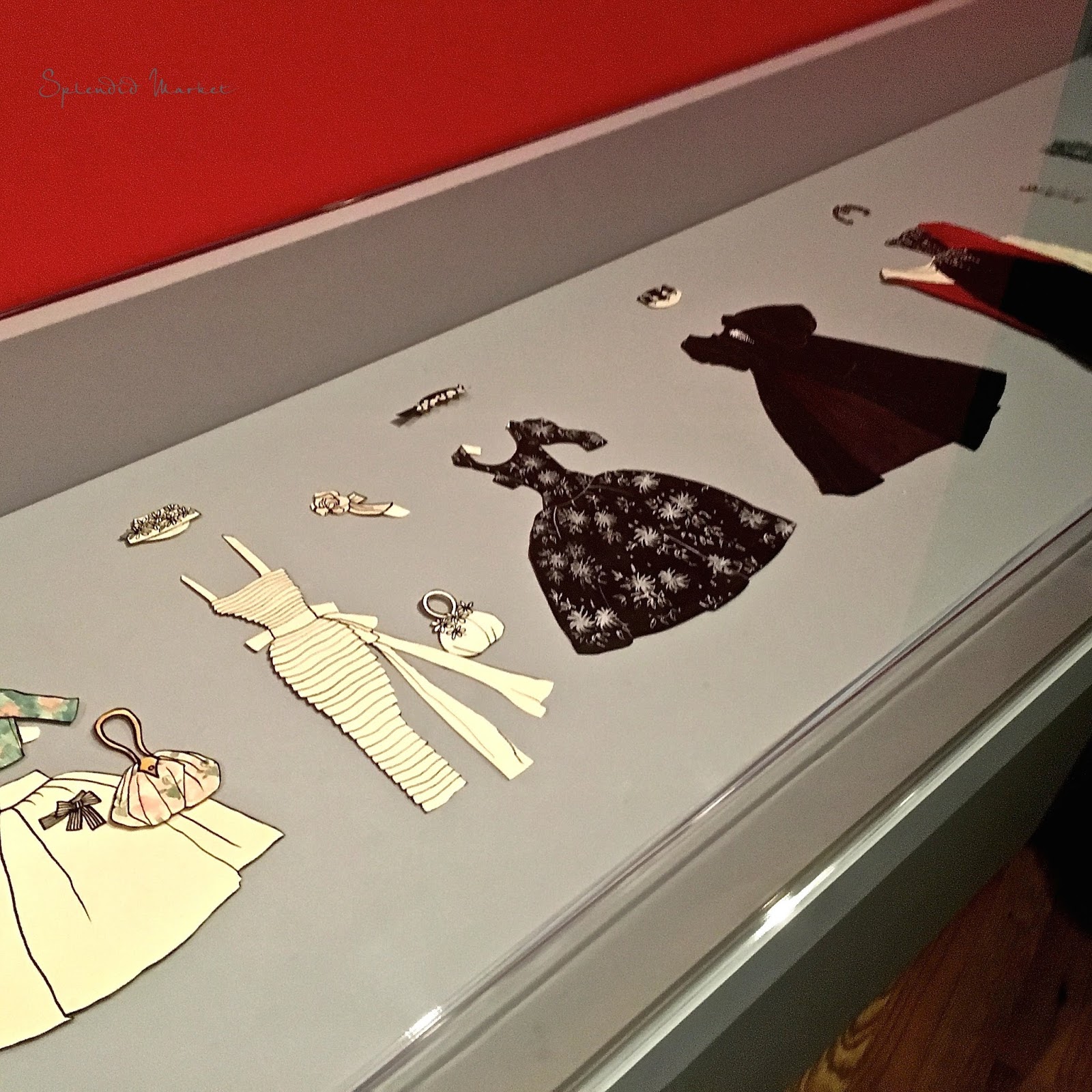 The display chronicles his life and love of fashion beginning with his childhood hand painted signs for his “shows” of paper dolls wearing his fashions that he put on for his sisters and childhood friends, along with the glamorous paper dolls and fashions.