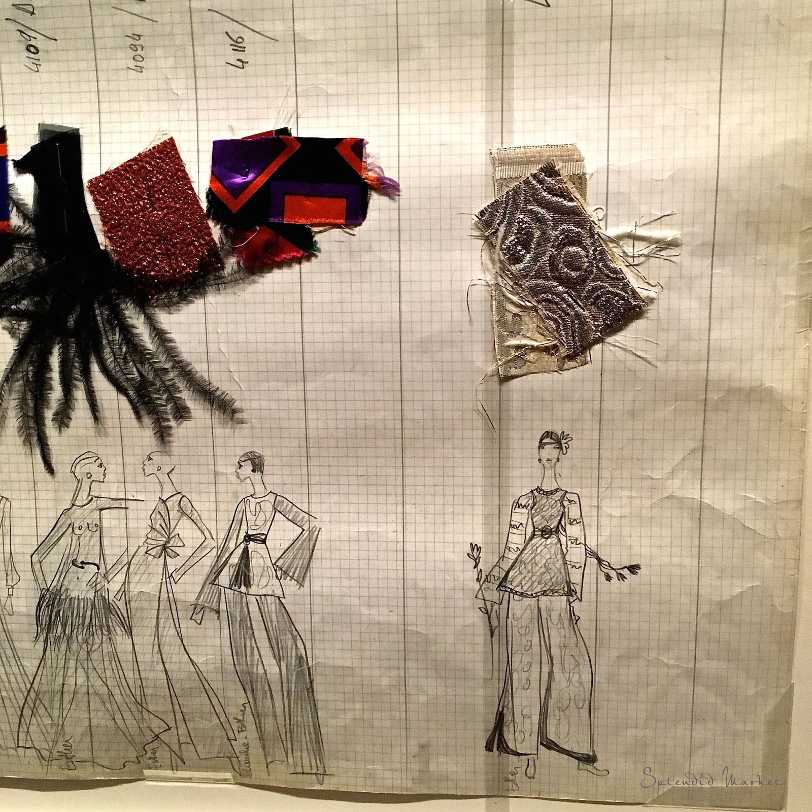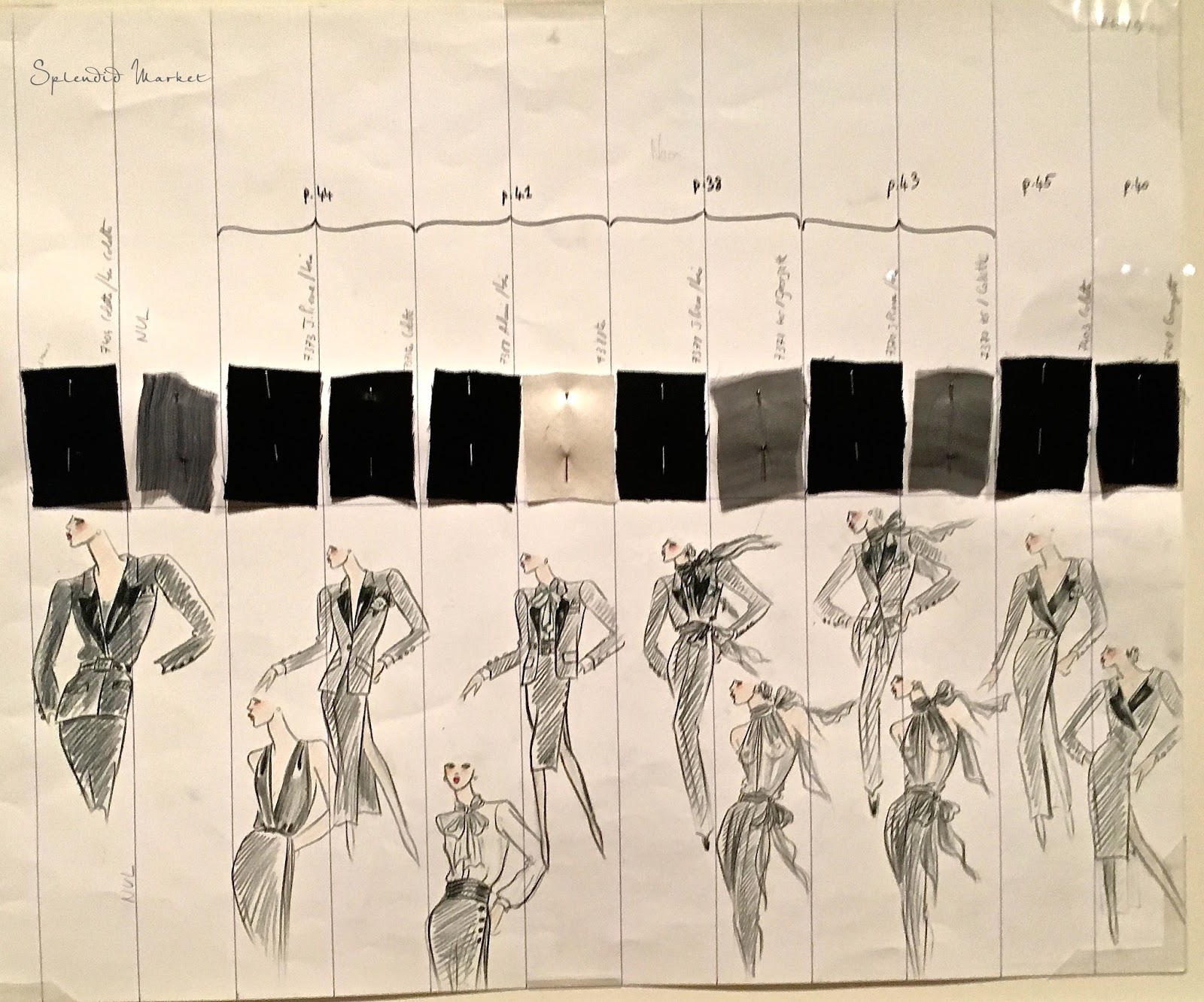 The inclusion of many of his drawings and sketches really enhanced the exhibit and showed insight into this great designer. Here are some of his sketches for the bottle design for his Opium perfume, scandalously launched in 1977. I’ve always loved Opium perfume, it is such a rich balance of fruits and spices with strong notes of Jasmine and Sandlewood.