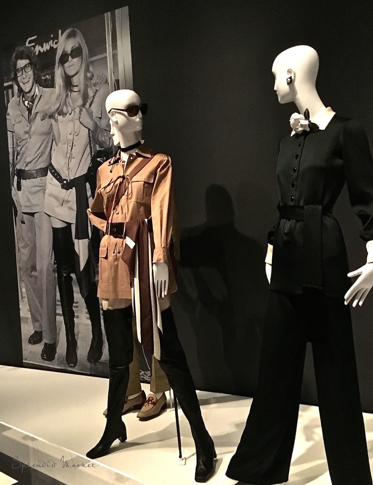 There are also great images of him through the years, I love this shot with his Meuse and “female twin” Betty Catroux, she’s wearing the sexy safari tunic shown on the mannequin in the foreground.