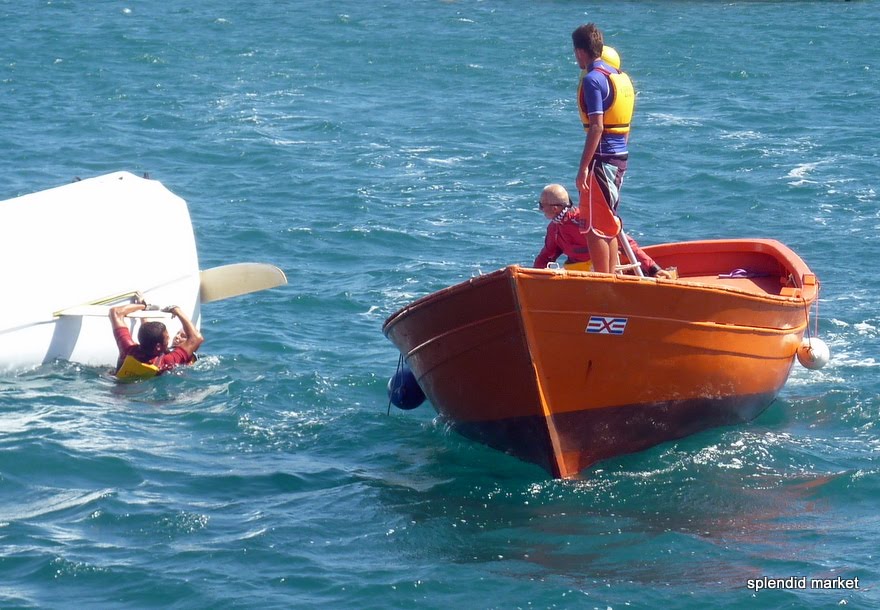 These boats from the sailing school, Centro Velico Caprera, off the Isla Caprera, ripped by our anchored yachts on this breezy morning, chasing after and coaching their racers.