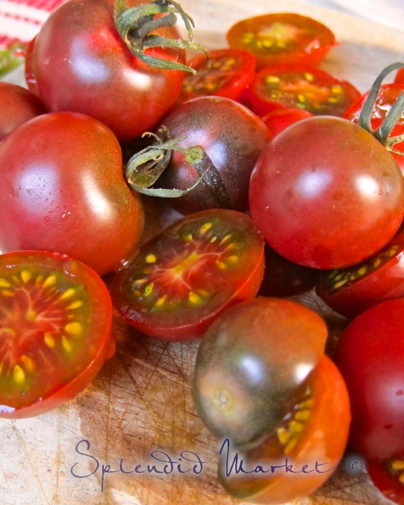 I try to use cherry tomatoes, preferably an heirloom variety, as much as possible in the summer. I think they are easier to prep, they are sweeter and look nicer in the salad.
