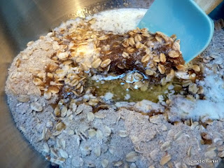 Preheat the oven to 350 degrees.Combine flour, oats, brown sugar, ginger and cinnamon in a small mixing bowl, toss together.